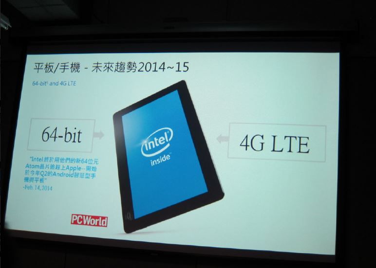 一定有很多人和小編一樣疑惑著,為什麼智慧型手機和平板電腦已經流行了這麼久的時間,Intel則選在這時候進軍市場呢? Jim分享時有提到這件事,解開了我的疑惑,因支援3G的手機、平板電腦市場都已經飽和,現在4G才剛開台,各家大廠紛紛推出支援4G手機、平板電腦,此時進入市場是一個非常好的時機,沒錯!一個產品進入市場的關鍵時間足以影響將來的銷售數量。
